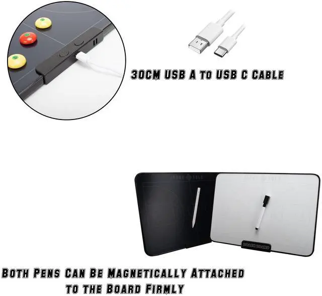 • The black board side is a electronic tablet, equipped with a stylus pen for highlight and smooth handwriting, with one-click clean button can be clean up without a second.
