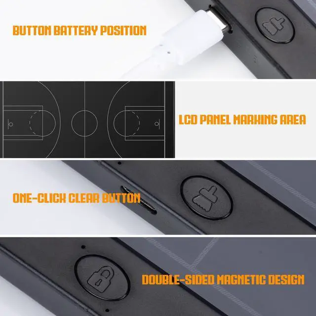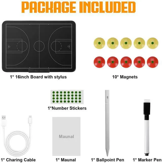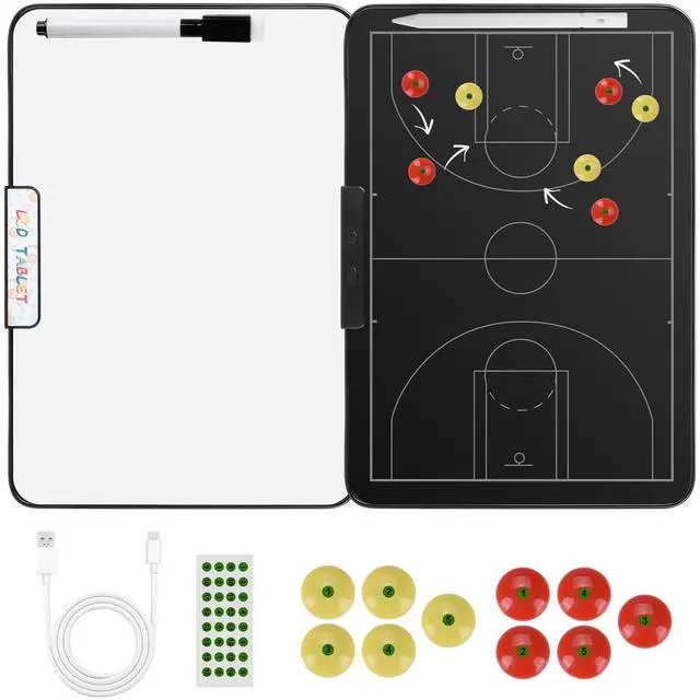 Smart Dual-Side,Two Boards in One: Basketball Coaching Board features an innovative dual-side design. Front is a 16-inch LCD electronic screen that offers a paper-like smooth writing experience with one-button, 0.2-second instant erasing. Reverse side is a traditional whiteboard. Two-in-one solution accommodates both electronic diagramming with quick edits and conventional freehand writing, serving as a versatile, all-in-one command center on the court