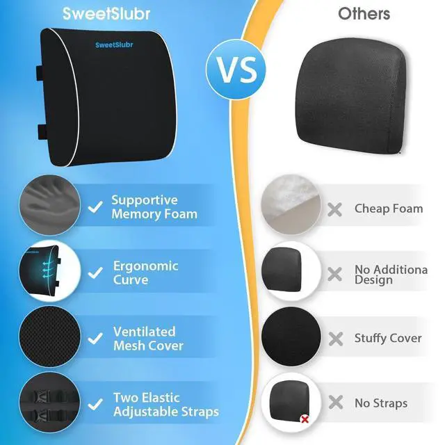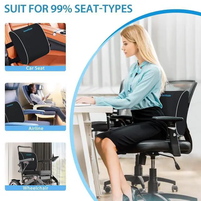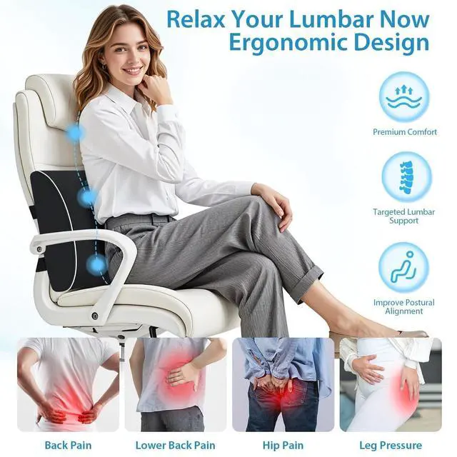 Ergonomic Lumbar Support for Sitting Long Hours: Designed to support the natural curve of your spine, this lumbar support pillow helps relieve lower back pain caused by prolonged sitting at office desks, home workstations or in the car