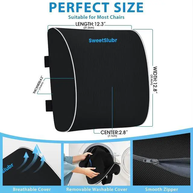 Lumbar Support Pillow for Office Chair, Car & Gaming Chair, Ergonomic Memory Foam Cushion for Back Comfort, Zoned Back Support, Double Adjustable Straps, Breathable Washable Cover, Black
