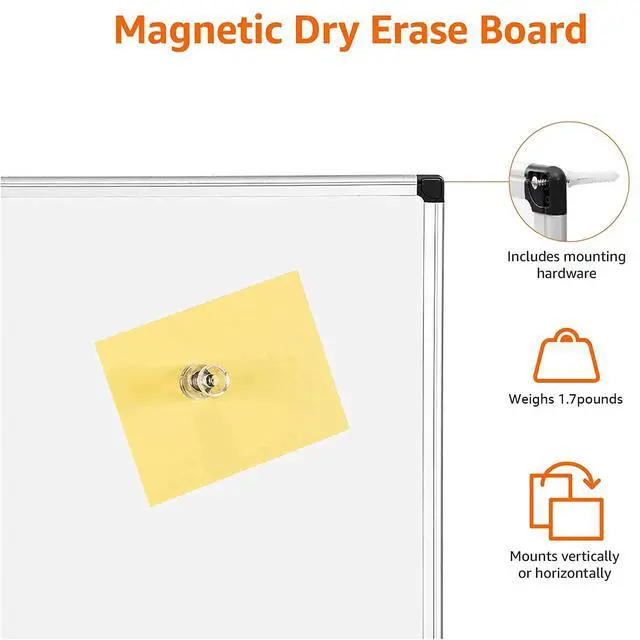 Magnetic Dry Erase Whiteboard, 24" x 18", Aluminum Frame, Silver/White, Presentation Board for Writing Notes