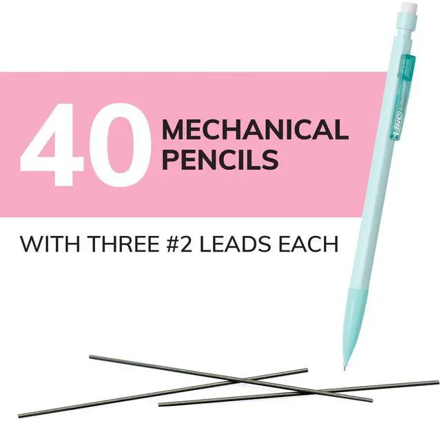 - One 40-count pack of BIC Xtra-Smooth No. 2 Mechanical Pencils With Erasers and Pastel Barrels.