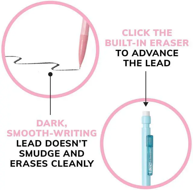 - BIC mechanical pencil with high-quality lead that doesn't smudge and erases cleanly, so your work looks neat and professional.