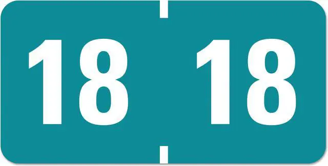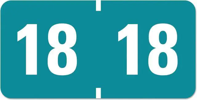 Complete current-year file folder creation with this Smead ETYJ 2018 year label roll. The mirror design fits over the edge of end-tab file folders for easy visibility on both sides, while the turquoise color stands out from previous years' hues for easy identification. Each sticker on this Smead ETYJ 2018 year label roll features an adhesive backing to ensure accurate filing.