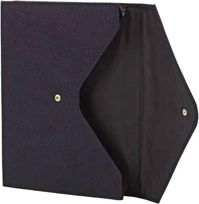 - Features a soft cloth dark blue exterior with matching sewn stitching and black cloth interior.