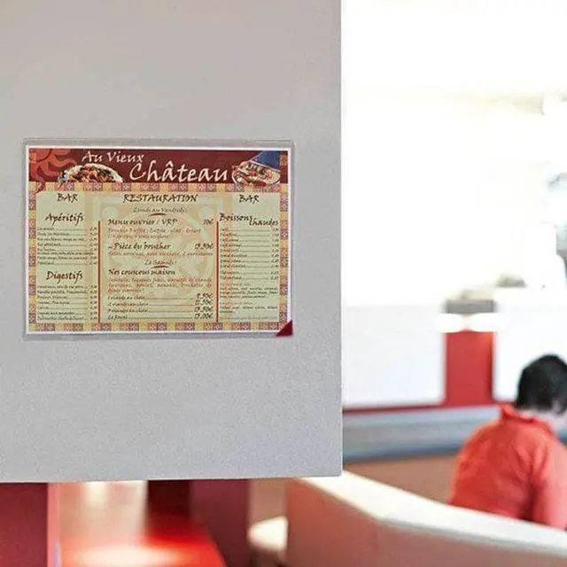 Sign Holder, Mounting Style Adhesive Backing, Overall Height 10 1/4 in, Overall Width 1/8 in, Material Plastic, Color Clear, Includes Repositionable Adhesive Backing, Package Quantity 5. This item has been restricted from sale in the following state (s): []