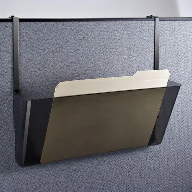 Get quick access to important documents and supplies. Organize charts, forms and incoming mail in this generously sized wall file. Transparent design makes it easy for you to see its contents, so you can find items quickly. Durable plastic construction withstands normal office wear and tear. Easy to mount. Hanging File Systems Type: Single Pocket; For File Size: Legal; Letter; Overall Height: 7"; Width: 16.19".