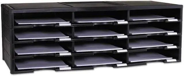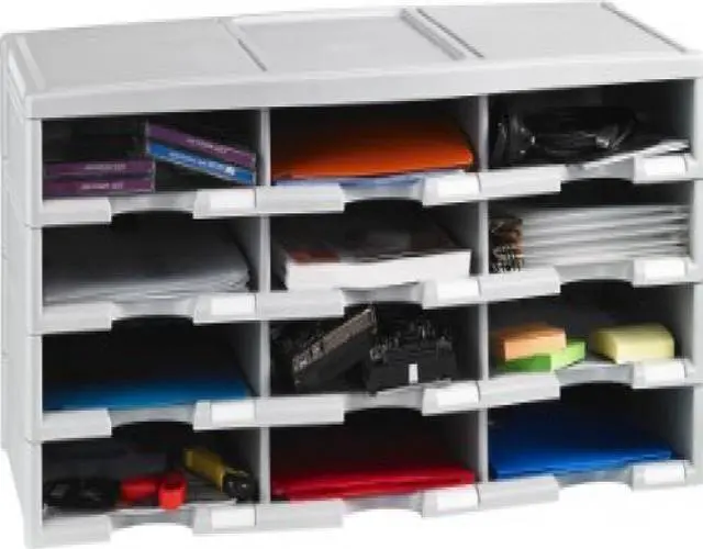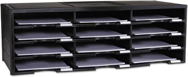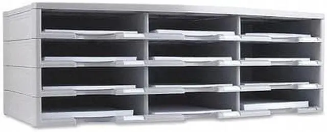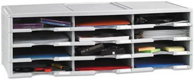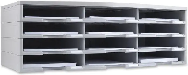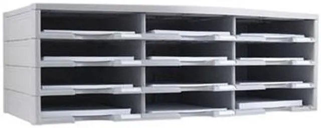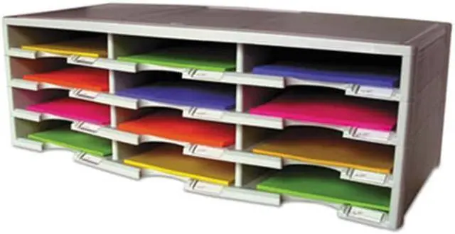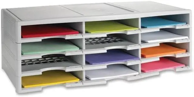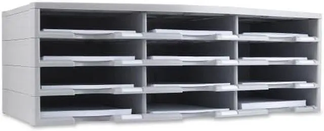 Storex 12-compartment Organizer - 6000 x Sheet - 12 Compartment (s) - 9.50" x 12" - 10.5" Height x 14.1" Width 31.4" Length - 100% Recycled - Polystyrene - 1 Each 12-compartment organizer brings order to your home or office clutter. The polystyrene construction provides a durable yet lightweight organizer that can hold a combined weight of 60 lb. Built-in label holders ensure a professional appearance and functional use. Large-capacity compartments hold up to 6, 000 sheets of paper to easily organize large amounts of files and documents. Space-saving design is stackable up to six units high to provide up to 72 different compartments.