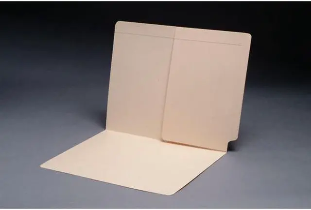 LETTER SIZE: 12 1/4" w X 9 1/2" Overall, 11 1/2" W Body, inside front pocket. Reinforced end tab 3/4" wide 9" x 5 3/4" pocket on inside back panel Scored tick marks for label placement Top corners rounded, front and back 10% recycled content, 10% post-consumer material 11pt manila Front panel 9" high No Fastener