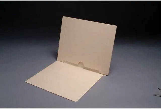 LETTER SIZE: 12 1/4" w X 9 1/2" H Overall, 9 1/2" Front, Full Pocket on back. Reinforced end tab 3/4" wide Full size pocket on inside back Scored tick marks for label placement Top corners rounded, front and back 10% recycled content, 10% post-consumer material 11pt manila stock Front panel 9" high No Fastener