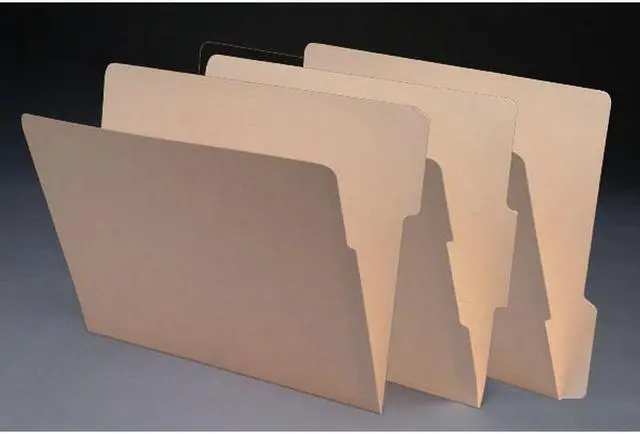 11pt Manila Folders, 1/3 Cut Assorted 2-Ply End Tab, Letter Size (Box of 100) Letter Size 12 1/4" W X 9 1/2" H, 11 3/4" W Body, Undercut to 11 3/8" Reinforced two-ply tab 1/2" wide Scored for 3/4" expansion Scored tick marks for label placement Top corners rounded, front and back 10% recycled content, 10% post-consumer material 11pt manila stock Front panel 9" or 9 1/2" high Front panel undercut 3/4" No Fastener