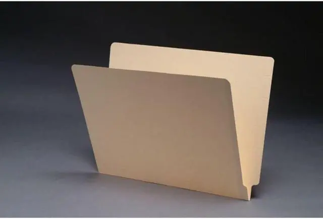 11pt Manila Folders, Full Cut 2-Ply End Tab, Letter Size, Drop Front (Box of 100) Letter Size 12 1/4" W X 9 1/2" H, 11 3/4" W Body, Undercut to 11 3/8" Reinforced two-ply tab 1/2" wide Scored for 3/4" expansion Scored tick marks for label placement Top corners rounded, front and back 10% recycled content, 10% post-consumer material 11pt manila stock Front panel 9" or 9 1/2" high Front panel undercut 1/4" No Fastener