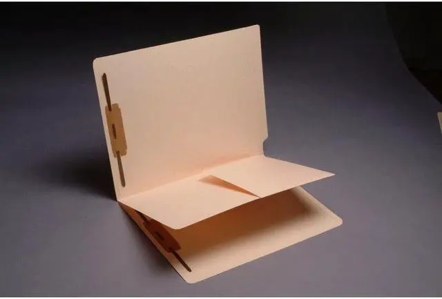 LETTER SIZE: 12 1/4" W X 9 1/2" H, 11 3/4" W Body, Undercut to 11 3/8" Reinforced end tab 1/2" wide Designed for a 3/4" expansion Scored tick marks for label placement Top corners rounded, front and back 10% recycled content, 10% post-consumer material 11pt manila stock Front panel 9 1/2" high Front panel undercut 1/4" 2" bonded fasteners in position 1&3 1 - 11pt manila dividers installed into folder 2" bonded fasteners on the dividers