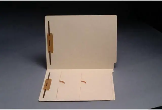 LETTER SIZE: 12 1/4" w X 9 1/2" Overall, 11 1/2" W Body, inside front double pocket. Reinforced end tab 3/4" wide First pocket 8 1/2" H x 9" mounted on inside front Second pocket 5" H x 9" mounted on inside front Scored tick marks for label placement Top corners rounded, front and back 10% recycled content, 10% post-consumer material 11pt manila stock Front panel 9 1/2" high 2" bonded fasteners - Position 1 & 3