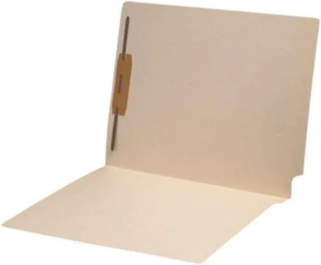 14pt Manila Folders, Full Cut End Tab, Letter Size, Fastener Pos #1 (Box of 50) Letter Size 12 1/4" x 9 1/2" Overall, 11 3/4" W Body Single ply tab 1/2" wide Scored for 3/4" expansion Top corners rounded, front and back 10% recycled content, 10% post-consumer material 14pt manila stock Front panel 9 1/2" high Front panel undercut 1/4" deep Fastener Position 1