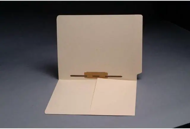 LETTER SIZE: 12 1/4" w X 9 1/2" Overall, 11 1/2" W Body, inside front pocket. Reinforced end tab 3/4" wide 9" x 5 3/4" pocket on inside front Scored tick marks for label placement Top corners rounded, front and back 10% recycled content, 10% post-consumer material 11pt manila stock Front panel 9" high 2" bonded fasteners - Position 5