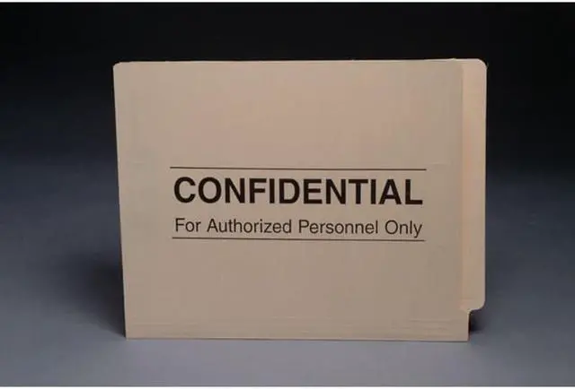 11pt Manila Folders, Full Cut 2-Ply End Tab, Letter Size, Confidential Printed (Box of 50) Letter Size 12 1/4" W X 9 1/2" H, 11 3/4" W, Undercut to 11 3/8" Reinforced two-ply tab 1/2" wide Scored for 3/4" expansion Scored tick marks for label placement Top corners rounded, front and back 10% recycled content, 10% post-consumer material 11pt Manila Front panel 9 1/2" high Front panel undercut 1/4" deep Printed outside front No Fastener