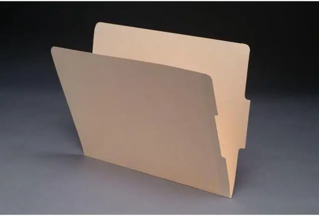11pt Manila Folders, 1/3 Cut Middle 2-Ply End Tab, Letter Size (Box of 100) Letter Size 12 1/4" W X 9 1/2" H, 11 3/4" W Body, Undercut to 11 3/8" Reinforced two-ply tab 1/2" wide Scored for 3/4" expansion Scored tick marks for label placement Top corners rounded, front and back 10% recycled content, 10% post-consumer material 11pt manila stock Front panel 9" or 9 1/2" high Front panel undercut 1/4" No Fastener