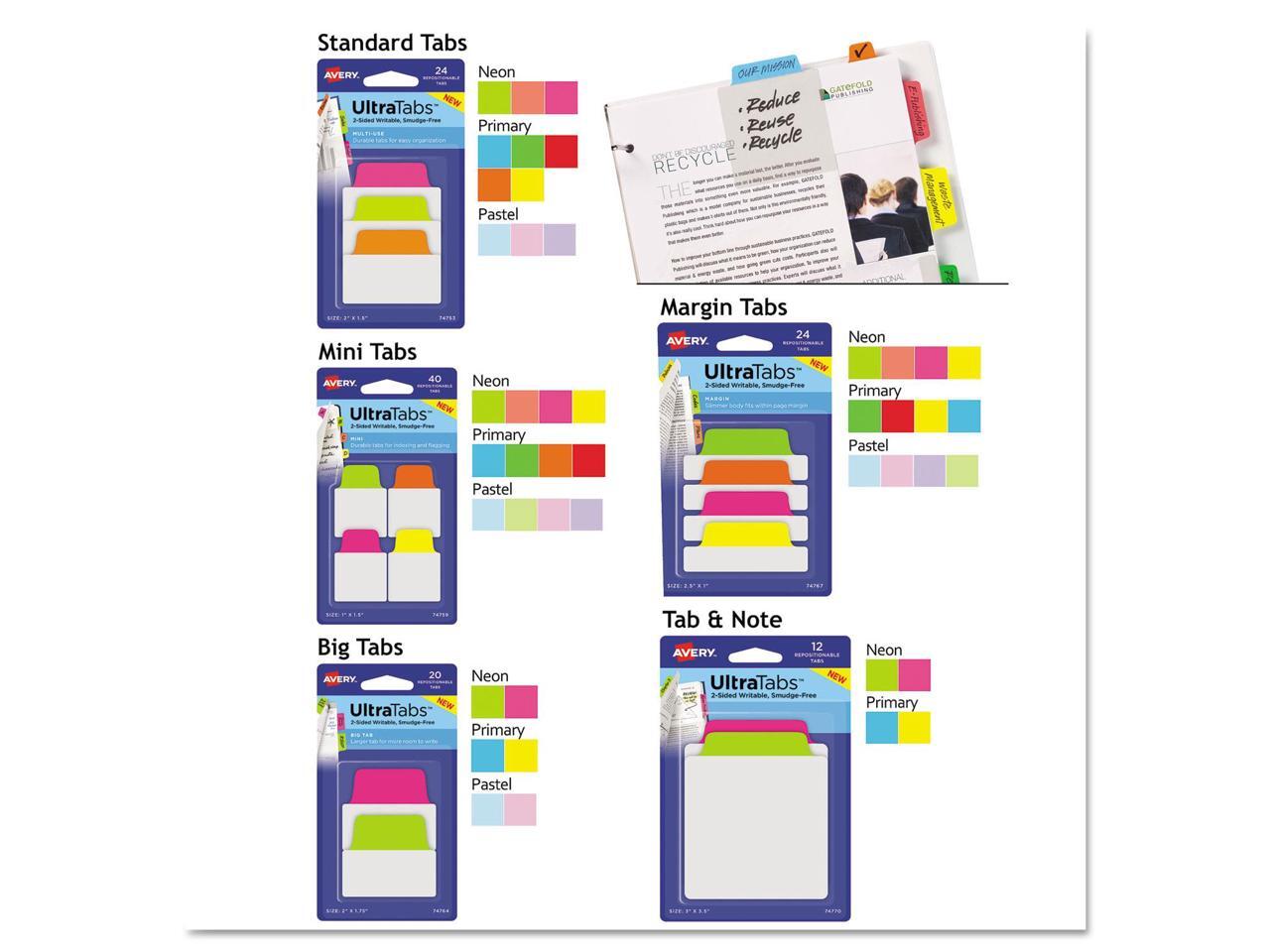 Ultra Tabs Repositionable Tabs, 2 X 1 1/2, Neon: Green, Orange, Pink, 48/pack