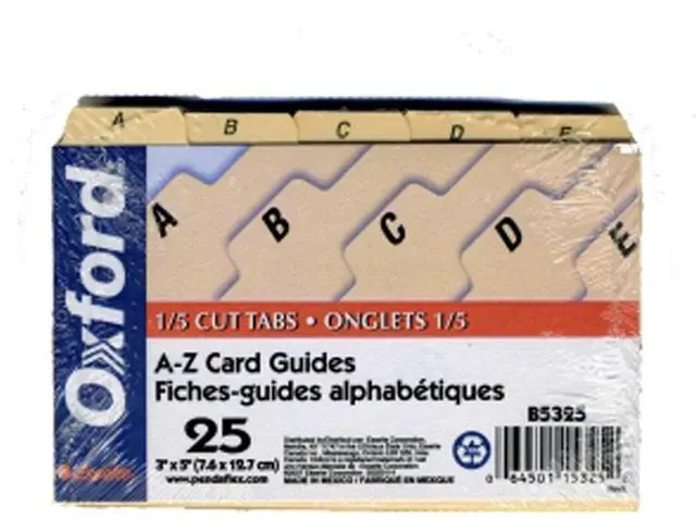 A-Z Index Card Files 1/5-Cut Top Tab Assorted Position 3 x 5 Manila 25/Set B5325