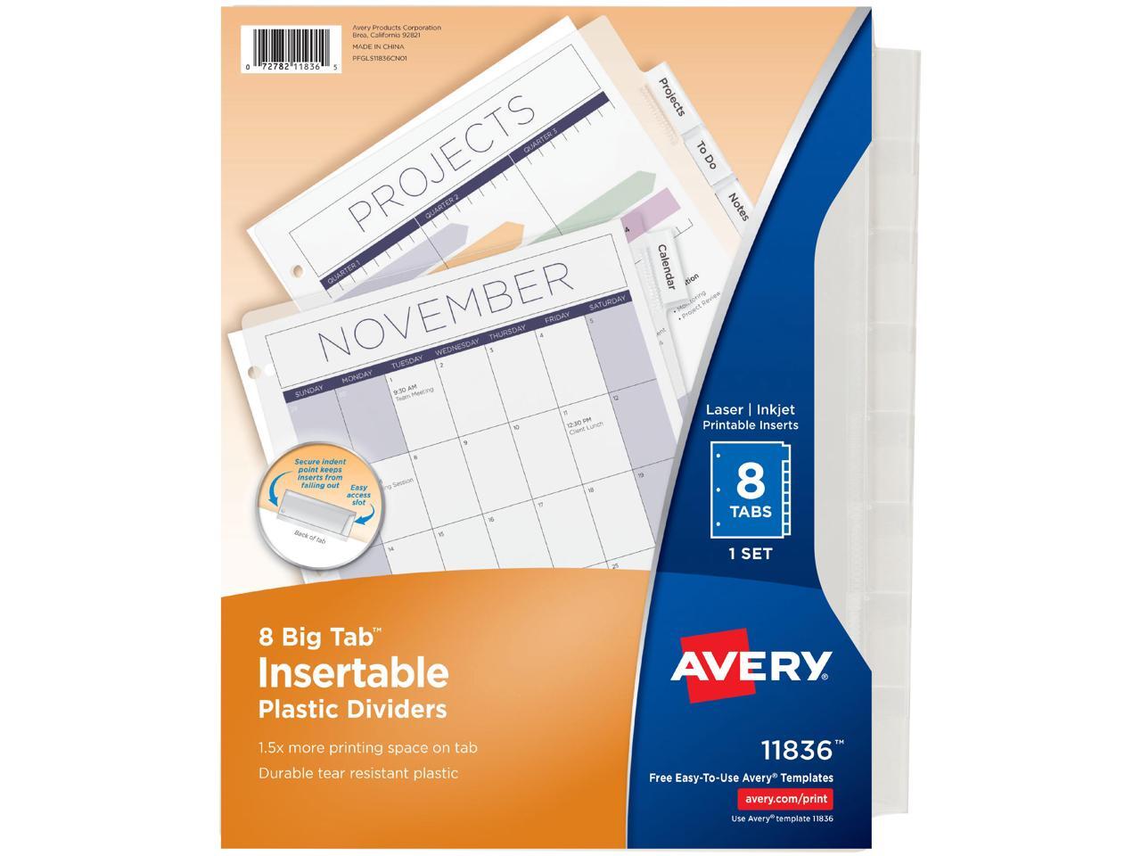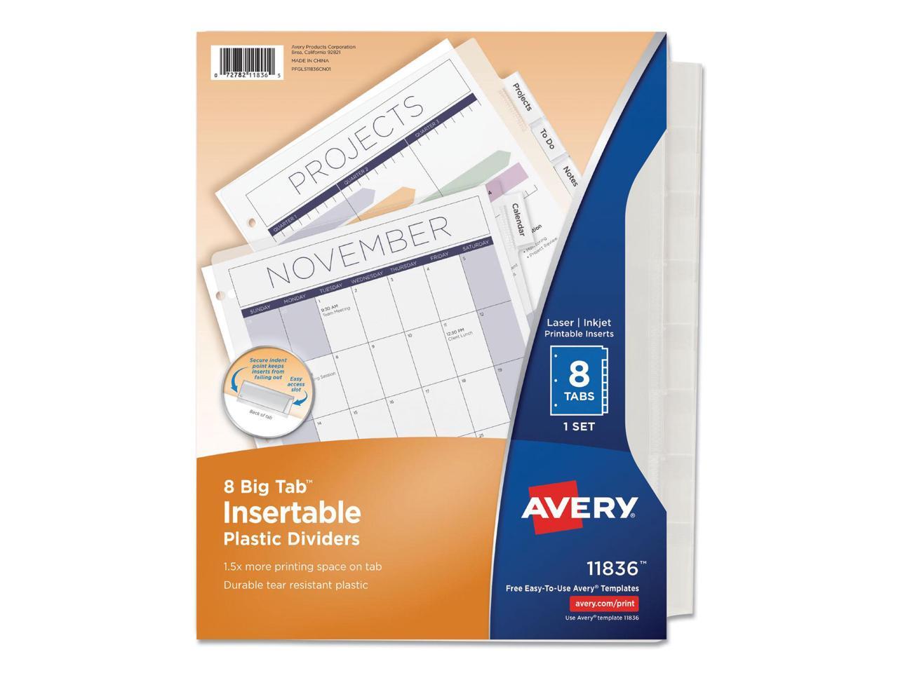 Avery Insertable Big Tab Plastic Dividers, 11 x 8.5, Clear, 1 Set (AVE11836)