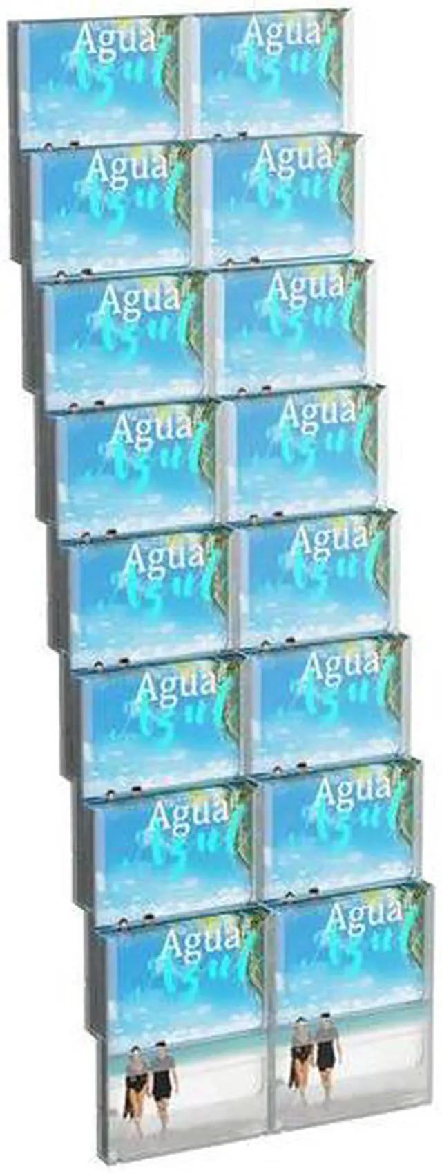 16-pocket letter size wall mount display. Use for printed material measuring 8.5"W x 11"H. Made from crystal styrene. Ships unassembled.