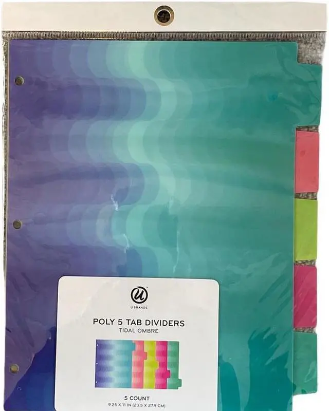 Durable, no-tear poly material Pack of 5 bright, 3D-like dividers Pre-punched to fit into your binder Measures 9.25" x 11" fits standard 8.5" x 11" letter sized paper