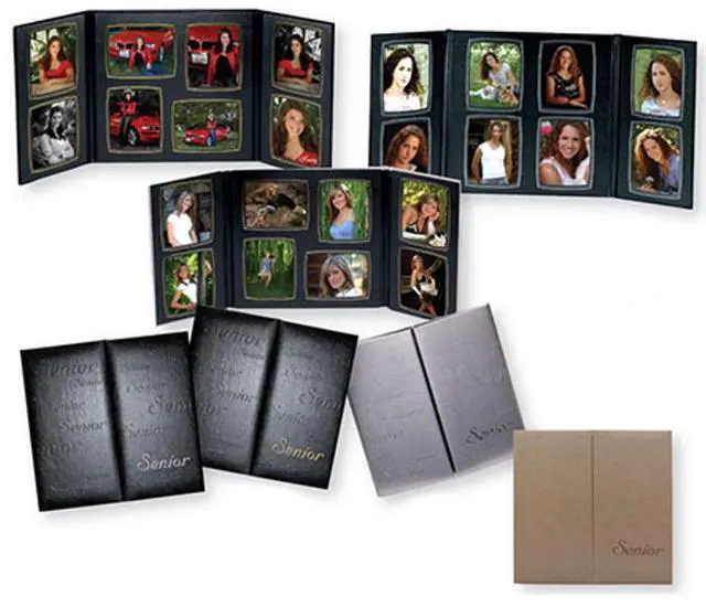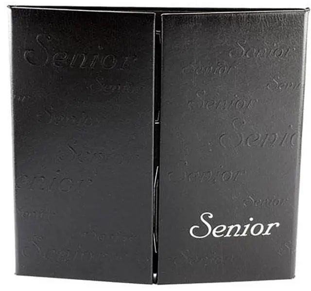 Crafted with an elegant faux leather finish, this black and silver photo gallery folio exudes a professional appeal that makes it an ideal gift for graduates. The word "Senior" is tastefully embossed on the front cover, adding a personalized touch that makes it even more special.