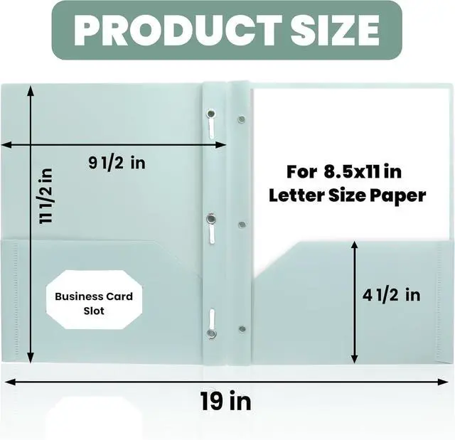 Organize Documents: 9.3 '' x 11.6 '' pocket folder fits perfectly on the 8.5 '' x 11'' letter size. 2 pocket folders with fasteners for 3-hole perforated paper. Quickly add 3-hole perforated paper in our easy-to-use 3-prong design.