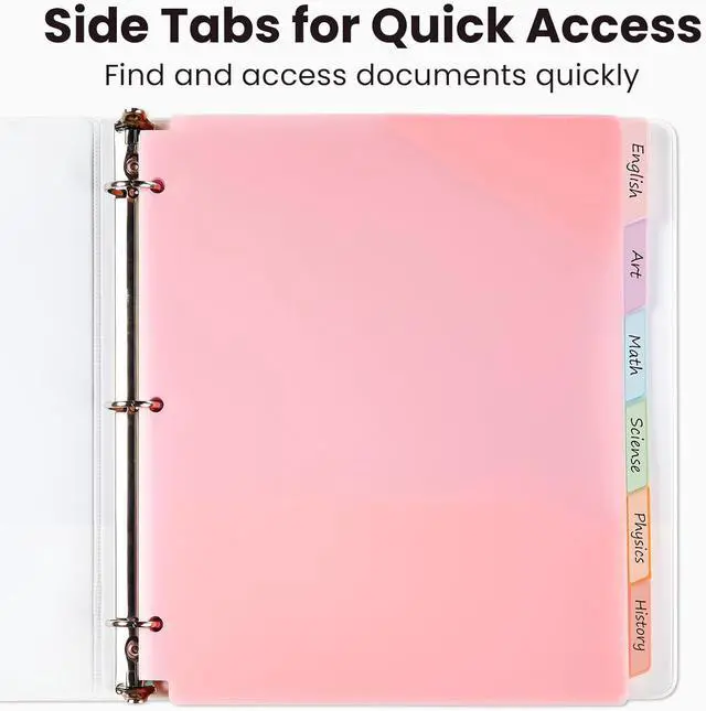 Side-Tab Visibility - Our dual-pocket folders feature convenient side tabs (like binder dividers) that remain clearly visible when stored in binders making your subject labels instantly recognizable - no more flipping through folders to find what you need! 3-Hole
