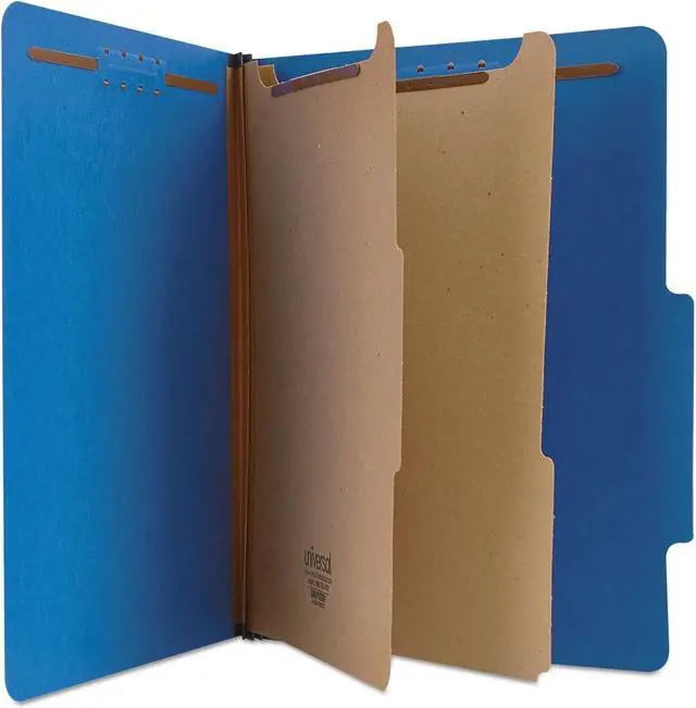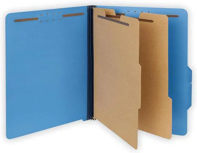 Cover and dividers are made from post-recycled content. Inner divider helps subdivide your documents within the folders. Made with 25 pt. pressboard covers and 20 pt. Kraft dividers. Tear resistant reinforced gusset for added durability. 2/5 cut top tabs in right of center position.
