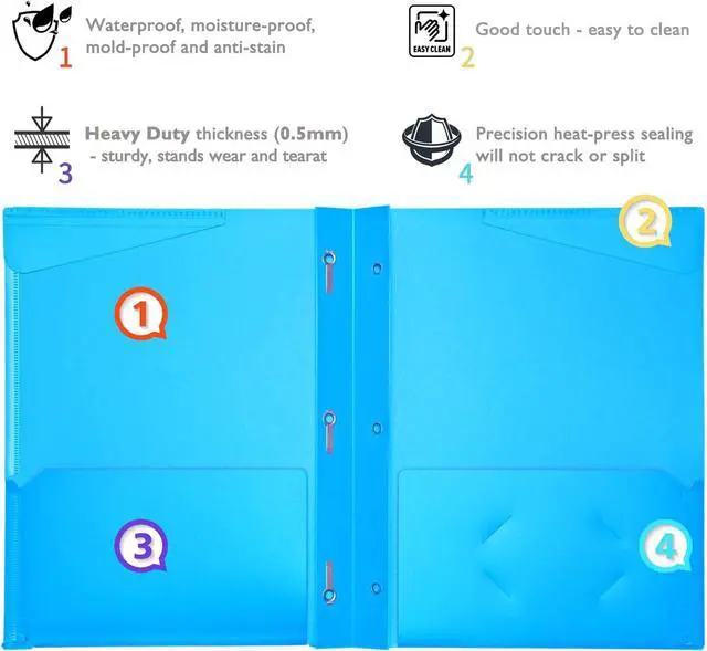 Letter-Size Sheets Steadily: Each plastic folder comes with 2 pockets and one card slot ideal for collecting your letter-size sheets and business card or student ID. The stay-put tabs on the inside of the pocket folders capture the top corner of your papers so to keep sheets steadily. In addition folders with prongs inside to store your messy loose 3 hole punched papers. Practical pocket folders. Organize your files and clean up your messy desktop.?