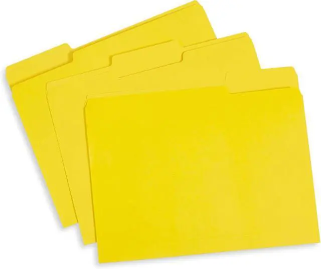 Easily store receipts letters documents for your office classroom or home with our durable paper stock colored file foldersEasily Locate your files with these yellow folders. Perfect design for a color-coded filing systemDesigned to brighten up your home or office and make filing easier. Better option compared to standard manila folders100 folders packed in a thick 1-piece box designed for easy storage allows for quick opening and shuttingSave time filing by avoiding misfiling with colored folders