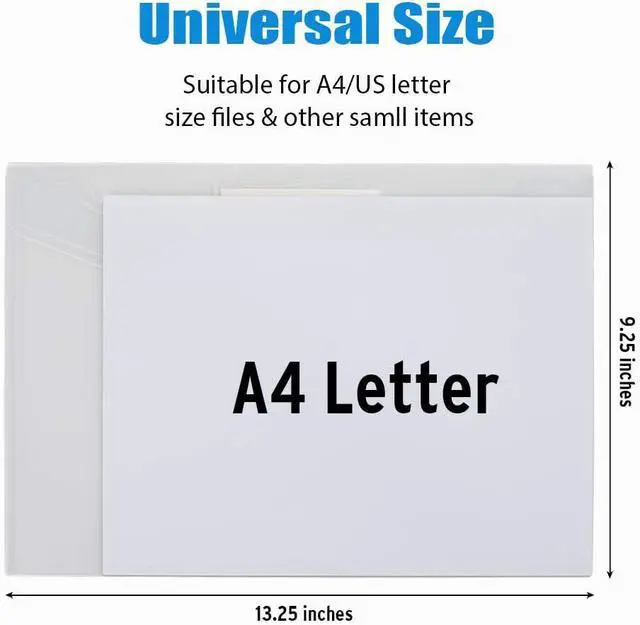 Transparent Envelopes & Large Capacity: Its easy to organize and distinguish your paper with 100% clear file folders. The envelope folder size is 13.25 x 9.25 inches it will hold no less than 200 sheets of Letter Size papersPremium Quality &