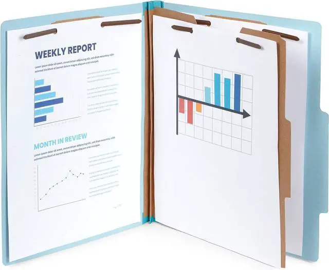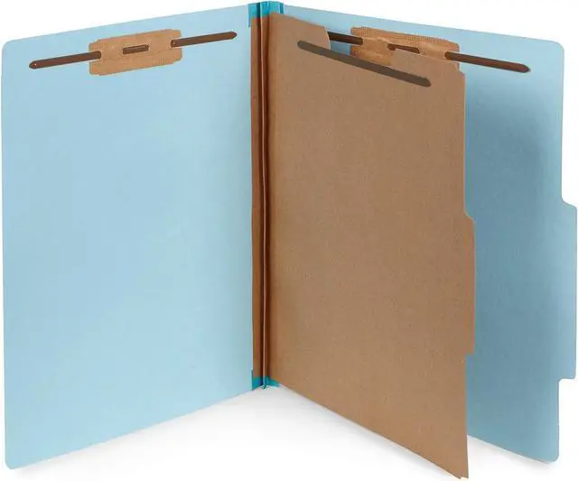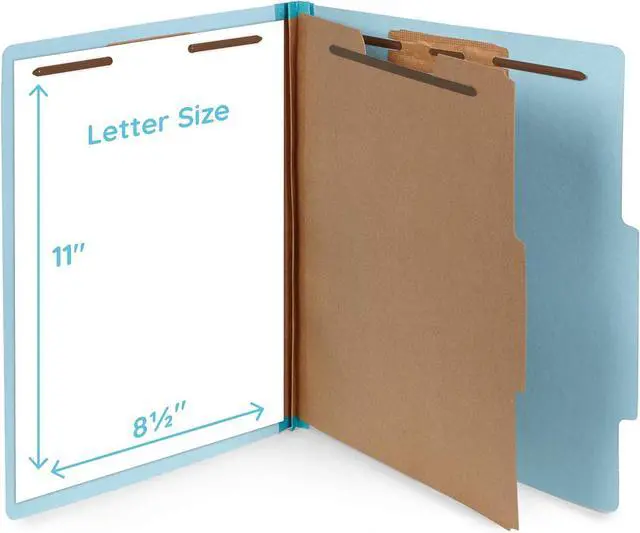 Repeatedly use our Top Tab Classification Folders with durable metal prongs for your medical charts and office files without worry of breaking of prongs or coming detached from the folder (LETTER SIZE) Perfect for storing over 100 files or larger bulky files with our durable 4 section classification folder with thick 25pt blue press board 17pt Kraft paper divider and strong 2 Tyvek expansionQuickly and easily organizing your standard letter size client files medical patient files or office filesPerfect for use in a color-coded file system in your classroom law office or business office with our bright blue paper stock.