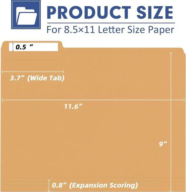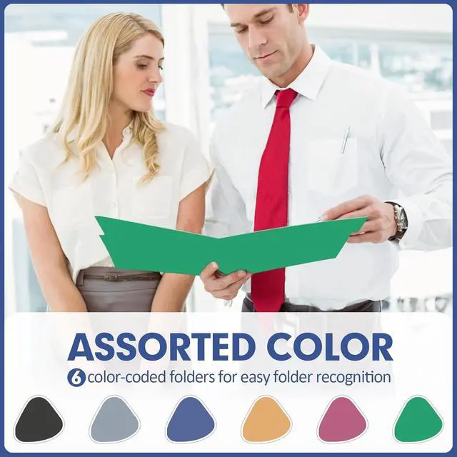File Folder - The package contains 120 pcs colored folders with 120 white lables a total of 6 colors (Darkblue Green Orange RedBlack Gery) assorted colors to enrich your office lifeTrisection Cut Tab - Each file folder features a 1/3 cut tab allowing for easy labeling and quick identification of contents. Pencil or erasable pen can be used to write marksExpandable Capacity - There are three expansion sublines at the bottom that can hold up to 120 sheets of paper. Designed to accommodate letter-sized documents these file folders are suit for organizing your important papers reports invoices or school assignmentsPremium Quality - Made from practical and heavyweight paper stock these file folders are built to withstand daily use and keep your documents safe and secureStay Organized - Whether you're organizing work-related documents school assignments or personal files these colored file folders are up to the task.