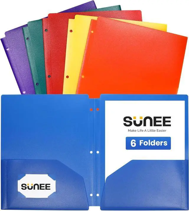 PACKAGE INCLUDED: 6/pack assorted color 3 hole heavy duty poly folder. Idea for important documents certificates receipts charts stamps stickers label pages awards anniversary diplomas letters and so on.