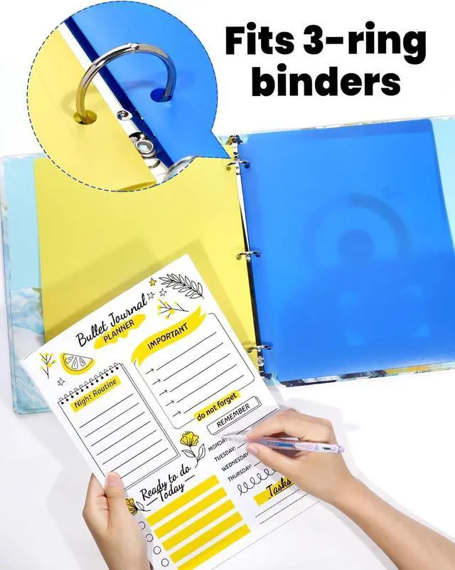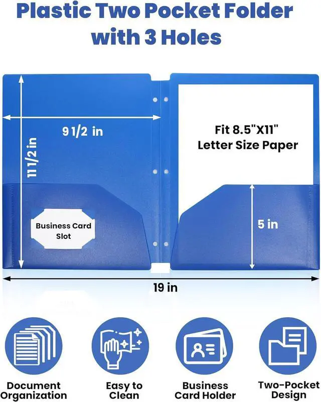 SIZES: The 9 1/2 x 11 1/2 inches heavy duty plastic folders with 3-hole and 2-pocket fit 3-ring binder and 8.5 x11 letter size paper perfectly. You can easily and neatly stack 50 pages of letter size paper per pocket.
