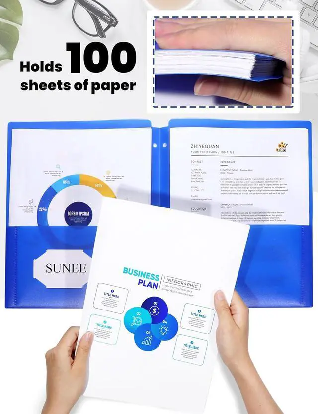 STURDY: The heavy-duty plastic folder is tear-resistant waterproof and dustproof. Better than the paper 2-pocket folder when outdoor. Perfect for students teachers staff to organize store and protect files even the user is a naughty kid.