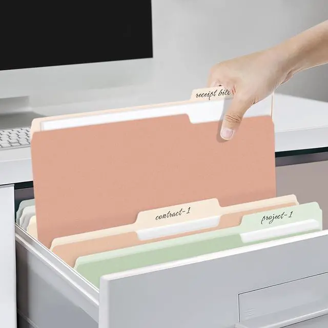 1/3 Cut Tab: Effortlessly navigate your files with the 1/3 cut file folder tabs design. This feature allows for clear labeling making it simple to organize and access your documents efficiently. Keep your office tidy and organized with these easy-to-use folders.