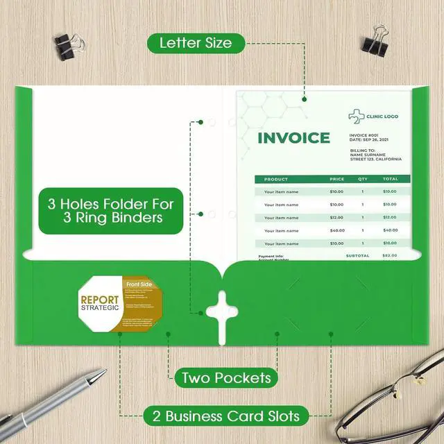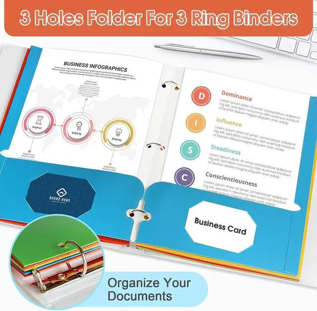 Perfect Design: A die-cut business card slots are provided in each folder which is suitable for you to store business cards. There are also pre-punch holes in the file folders with pockets. You can easily punch out the holes for use with 3-ring binders.