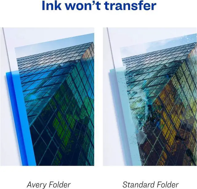 With a perfect blend of style and professionalism the versatile pocket folder can be used as a homework folder note organizer folder receipt folder and moreThe water-resistant plastic folder with pockets is durable enough for frequent use and protection yet lightweight enough for easy portabilityKeep your folder clean and your documents in pristine condition as the non-stick poly material is designed not to lift or transfer any printAdd a professional touch to your pocket folder with the die-cut business card slot located on the inside back pocketThe translucent blue folder can hold up to 10 loose sheets of paper in each pocket