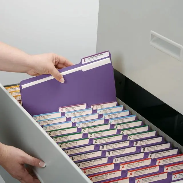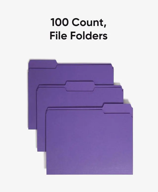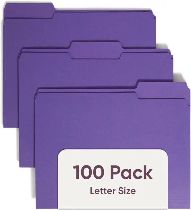 ENHANCED ORGANIZATION: Straighten up your files and keep documents organized with this set of 100 letter size (11-5/8 x 9-1/2) 1/3-cut tab file folders in purple your essential paperwork organizerESSENTIAL
