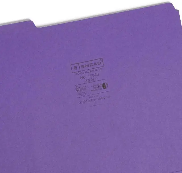 AND MADE IN USA: These folders are proudly made in the USA and contain 10% recycled content and 10% post-consumer material; SFI certified reflecting Smead's commitment to environmental responsibility