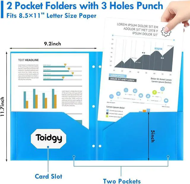 Multipurpose Folders: It adopts 3 hole punched design which can easily fit into a circular binder (not included) making it easy to sort and organize file. The poly folders with two pockets is perfect for American standard 8.5 x11 letter size paper and the folders with pockets 3 hole punched provides ample storage space with a capacity of over 100 pages! Convenient to