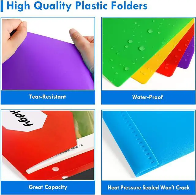 Durable and Sturdy: Our heavy duty folders is made of ultra durable polyethylene material which has tear resistance water resistance and dust prevention functions. Easy to clean just gently wipe with a damp cloth to clean. Greatly helps you organize and protect important documents notes and papers in school or at work.