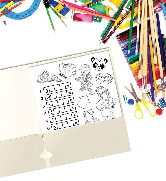 50-PACK: white matte finish paper folders with 4 pockets. Easily holds 100 sheets (50/pocket) of letter size ( 8.5 x 11) paper/documents. But can even handle more.
