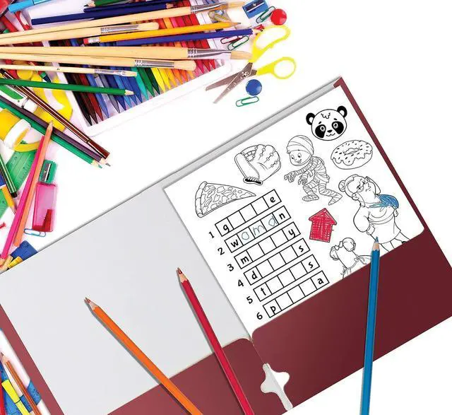 50-PACK: Burgundy matte finish paper folders with 4 pockets. Easily holds 100 sheets (50/pocket) of letter size ( 8.5 x 11) paper/documents. But can even handle more.