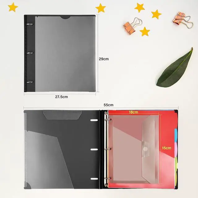 Multiple Pockets Organizer: Comes with customized front cover+1 clear catalog inner pocket with stay-put tab+5 plastic double-side pocket dividers with tabs+1 plastic binder pocket WOT I 13 pockets binder organizer will bring you with an all-around user experience in presenting organizing categorizing and classifyingOutstanding 3
