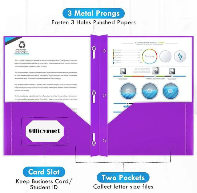 Efficient Organization: Each prong folder measures 9.2 * 11.7 inches (closed) making it ideal for storing letter-sized files. The two pockets on the inside of the folder are perfect for collecting as many files as possible and one of the pockets has a card slot for easy access to business cards. You can easily insert labels outlines content or other documents for project sorting and viewing They are suitable for school homework and office supplies.